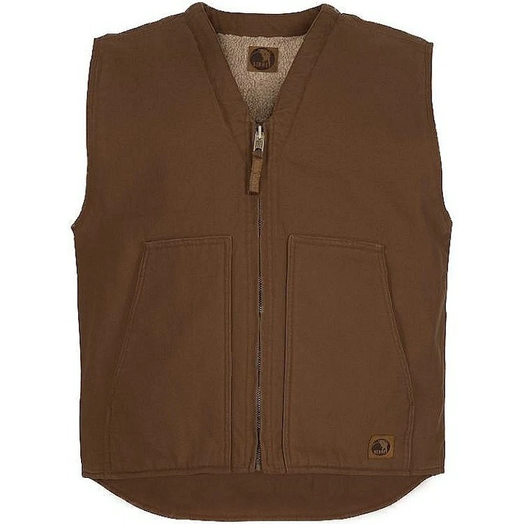 This re-designed vest features a v-neck opening for a comfortable fit. The 12.0Â oz. 100% washed cotton duck shell and premium, heavyweight sherpa lining and extended back tail provide additional warmth. This item is perfect when paired with our heavyweight, thermal-lined fleece sweatshirts.