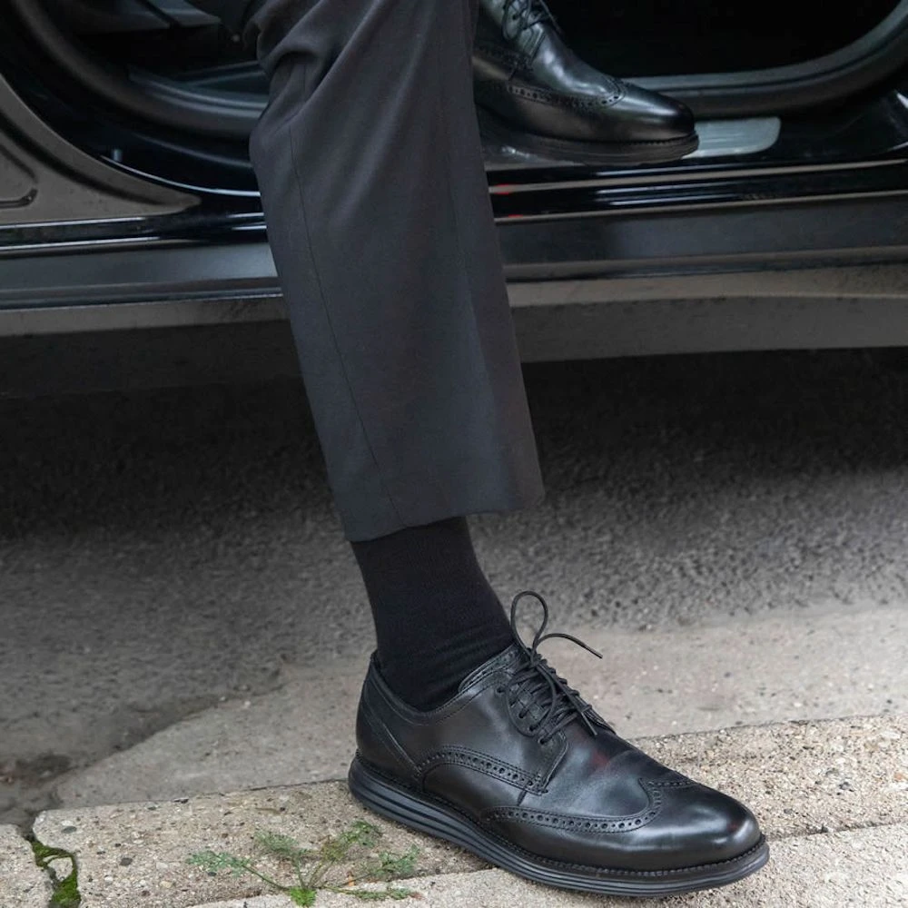 Loose Fit Stays Up mid-calf dress socks are 25% wider than the typical dress sock, with a stretch of about 21 inches in the leg. Designed for people with a regular width or a wider width up to EEE. The socks are less binding on the feet and legs, and fuller cut than other dress socks. If you have a muscular or wider calf, or just like a looser more comfortable fitting mid-calf sock, then give these socks a try. Your feet and legs will thank you. Made from soft ring spun cotton and available in black, navy, tan, and brown. The socks are unisex and fit shoe sizes from women’s size 10 regular width to a EEE wide width up to a men’s size 16 regular width to a EEE wide width. Proudly Made in the USA!